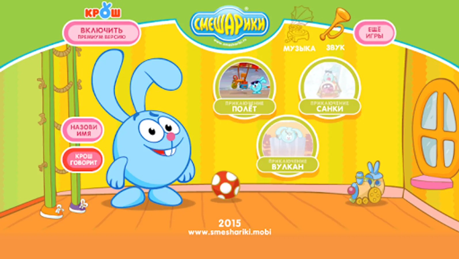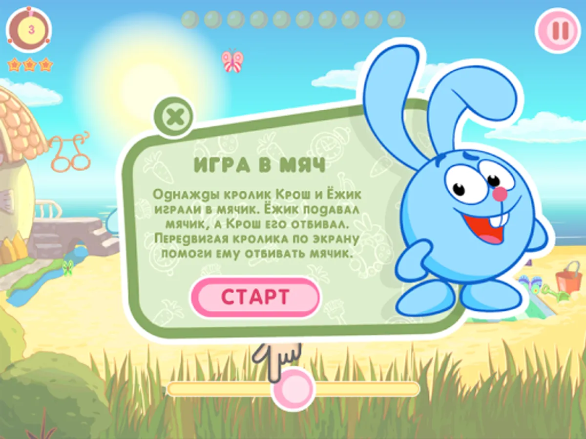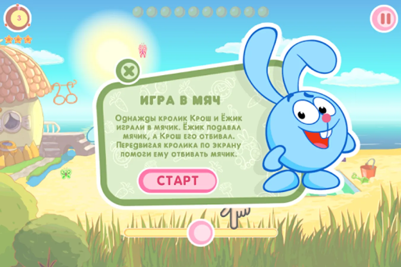 Interactive cartoon "Smeshariki. Krosh" about the restless rabbit Krosh is not only entertainment, but also exciting games of reaction, logic and attention!