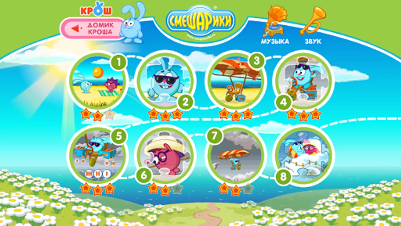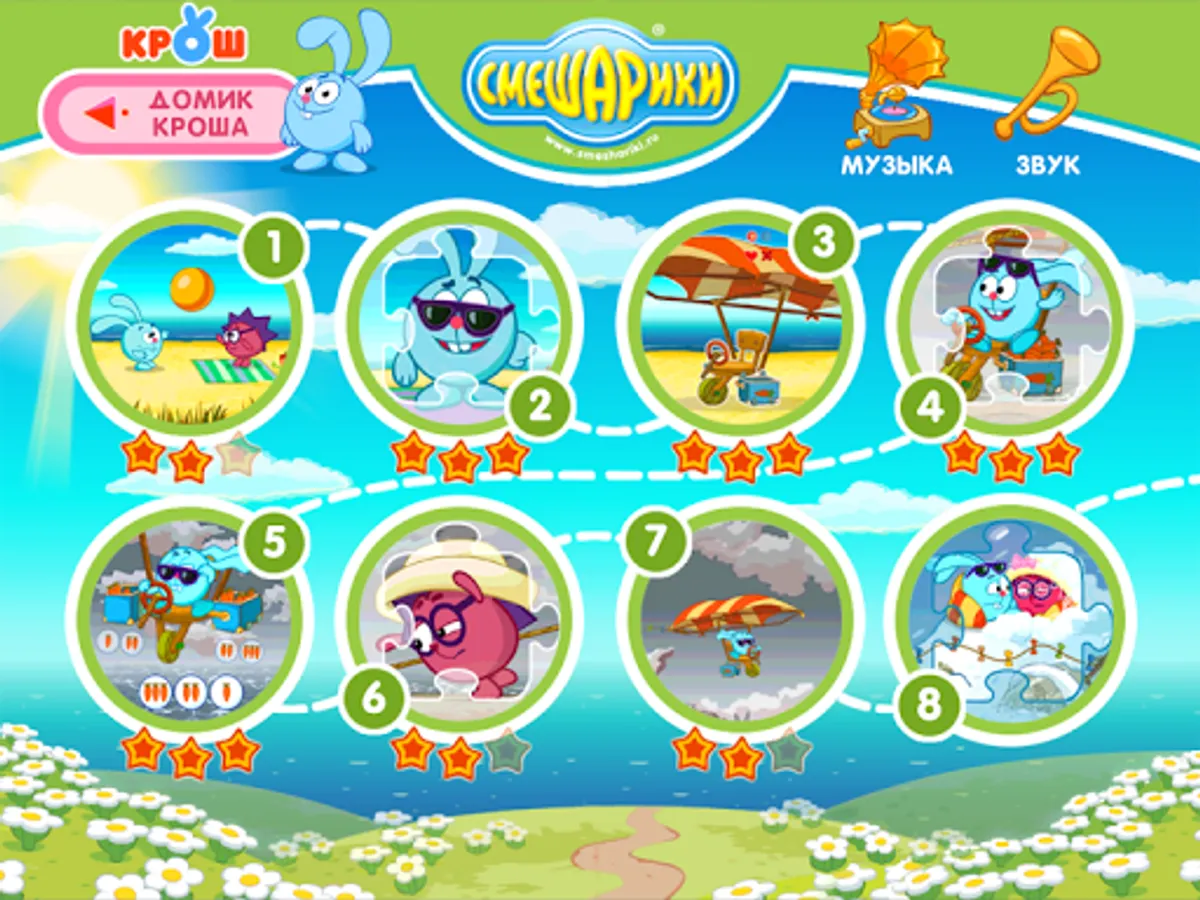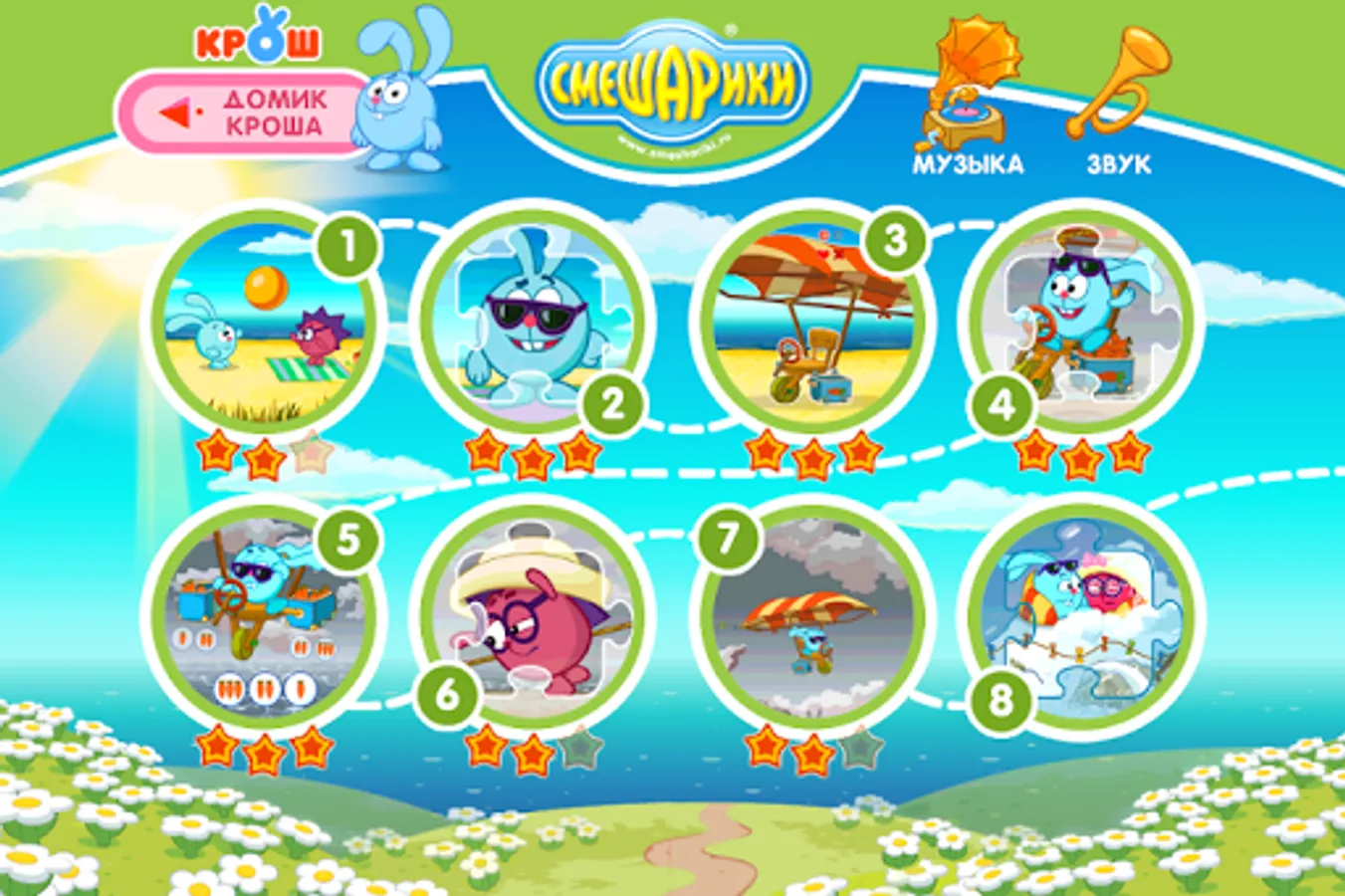 Interactive cartoon "Smeshariki. Krosh" about the restless rabbit Krosh is not only entertainment, but also exciting games of reaction, logic and attention!