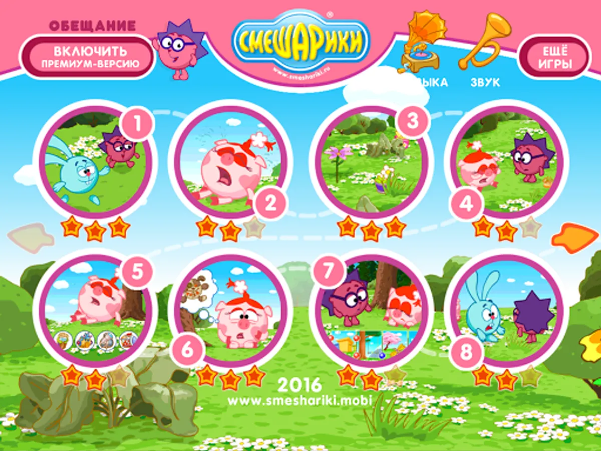 So the interactive cartoon "Smeshariki. Promise" is for you! And this is not only entertainment, these are exciting games for reaction, logic and attention! You have to help Smesharik the Hedgehog go through many interesting and difficult adventures in order to fulfill his promise.