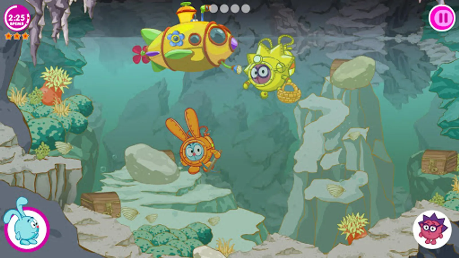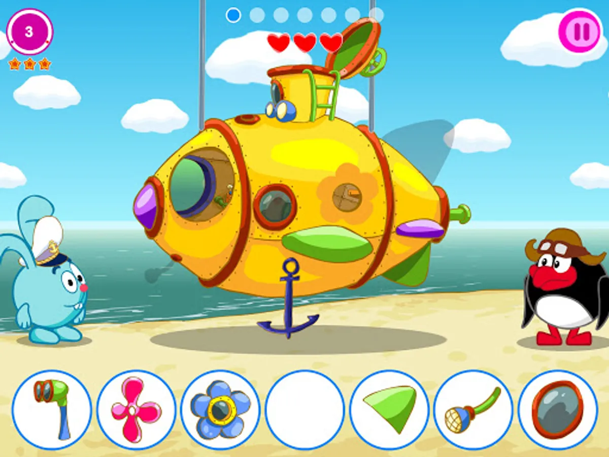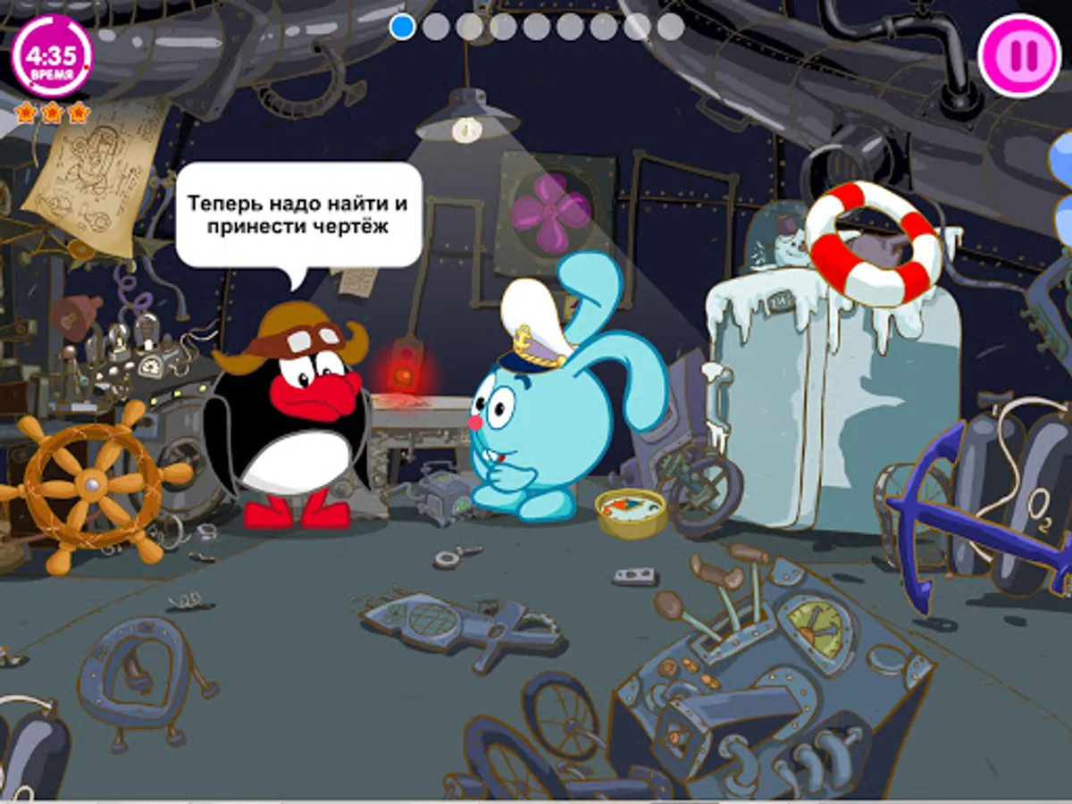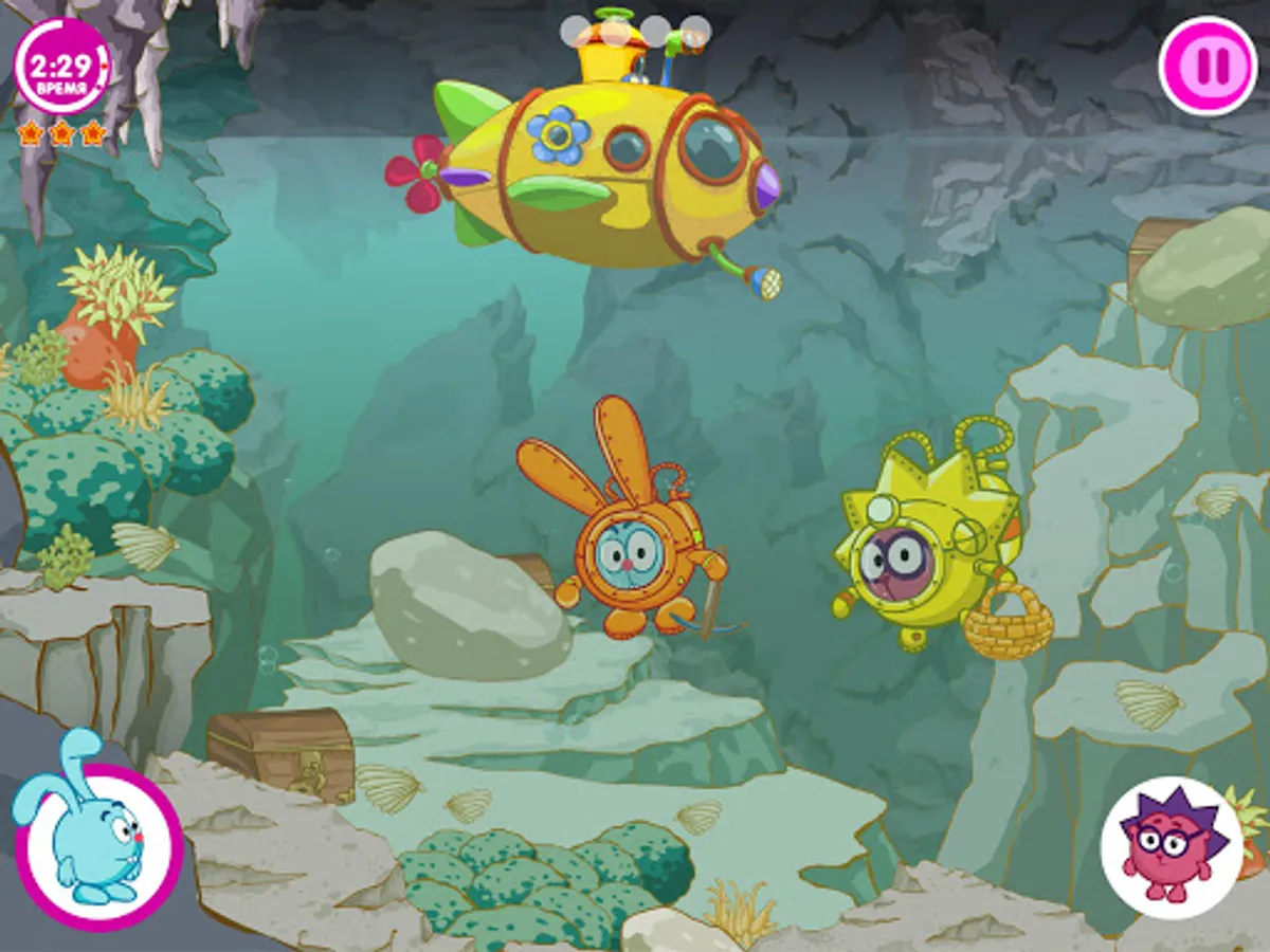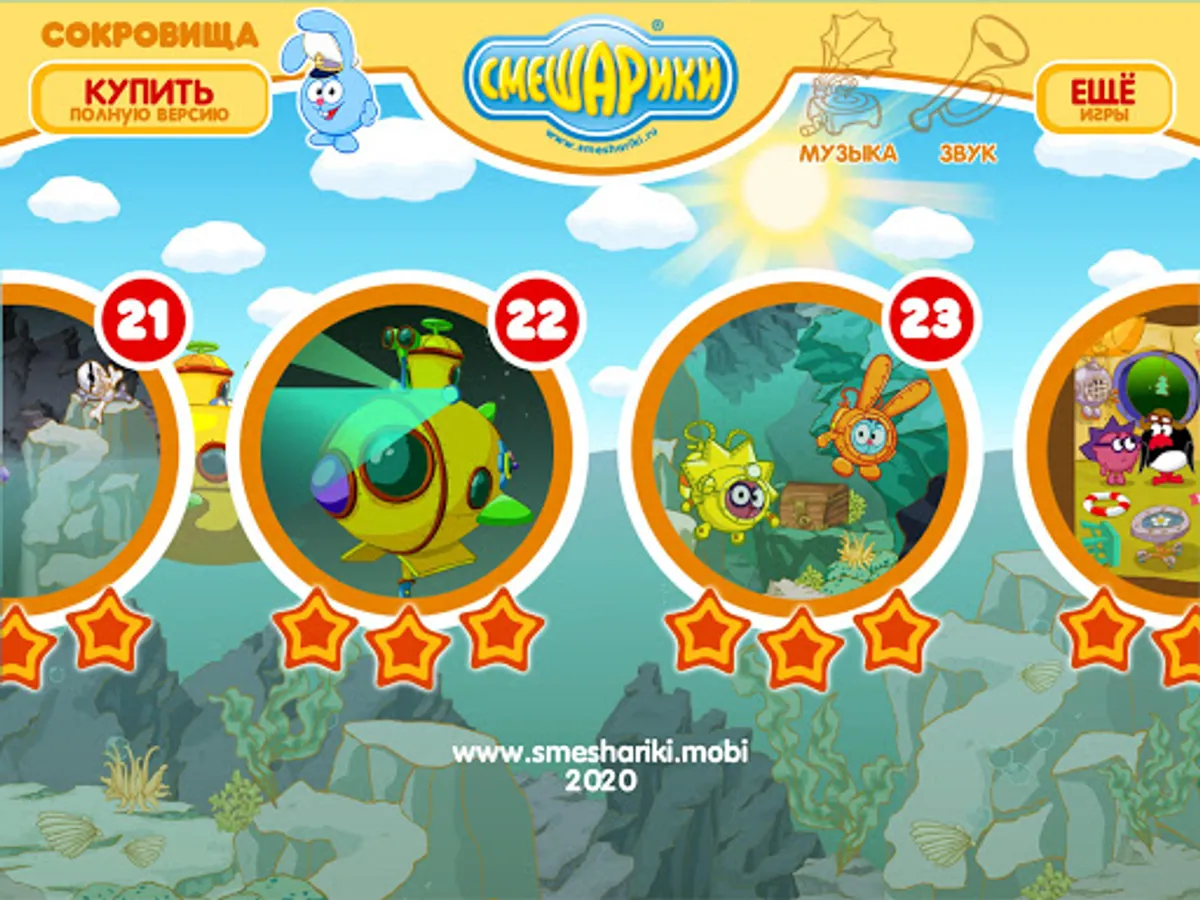 Go in search of pirate treasures with Krosh, Hedgehog, Nyusha and Pin! You have to build a submarine, sink to the bottom of the sea, explore the abandoned caves and take part in other adventures of Smeshariki. Will friends find treasures? To find out, quickly install the application and join the game!
