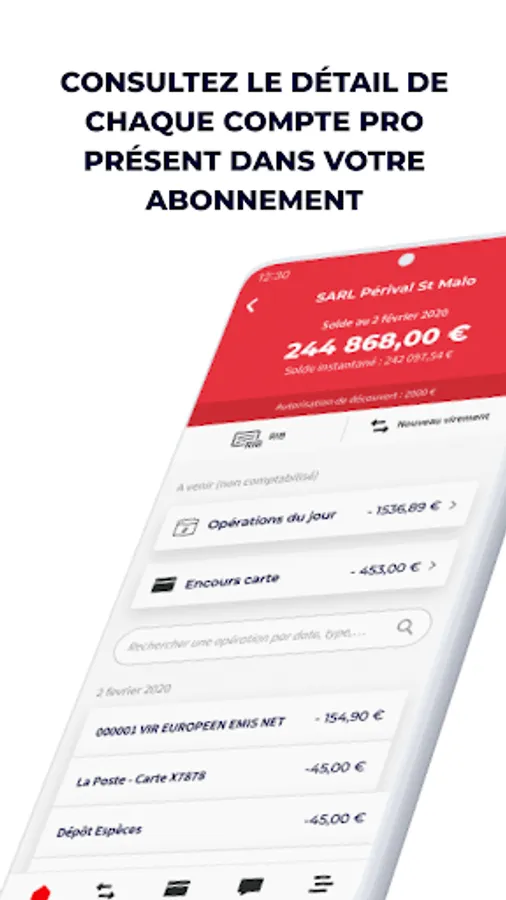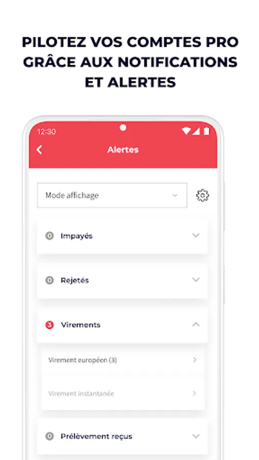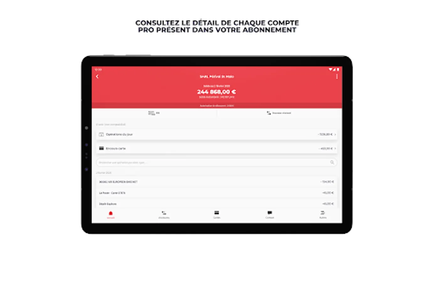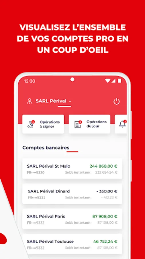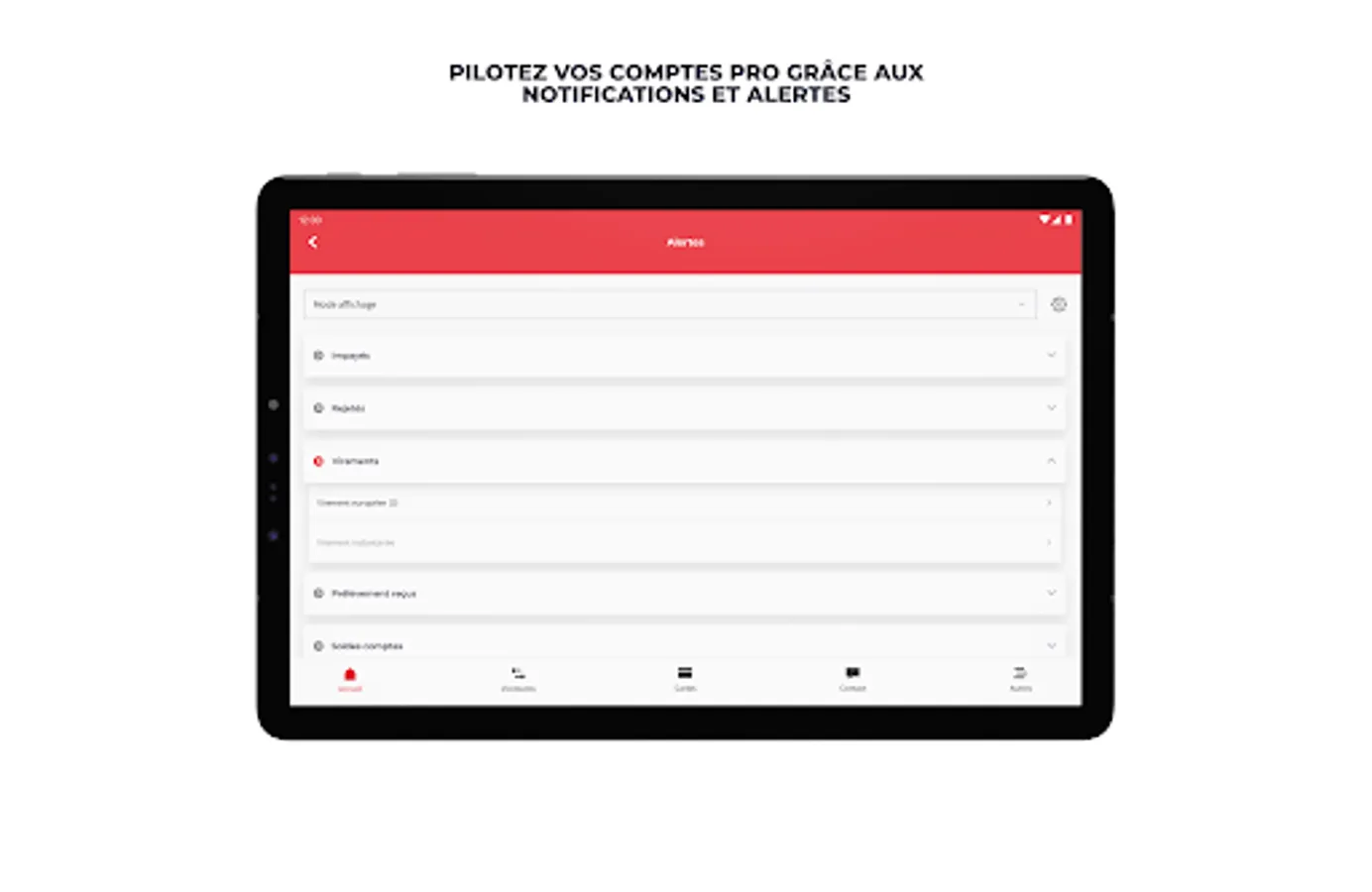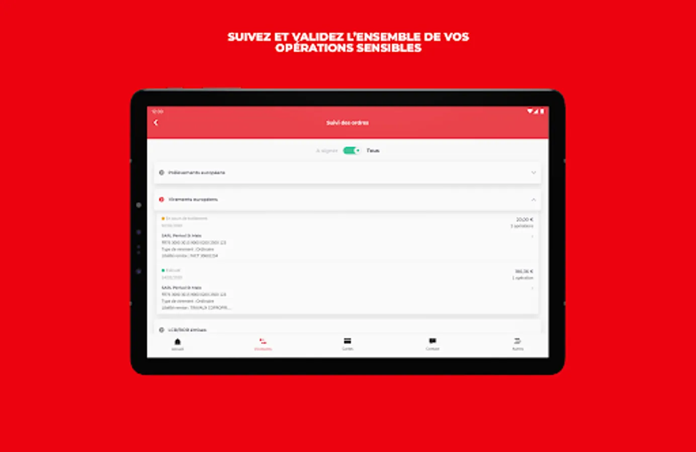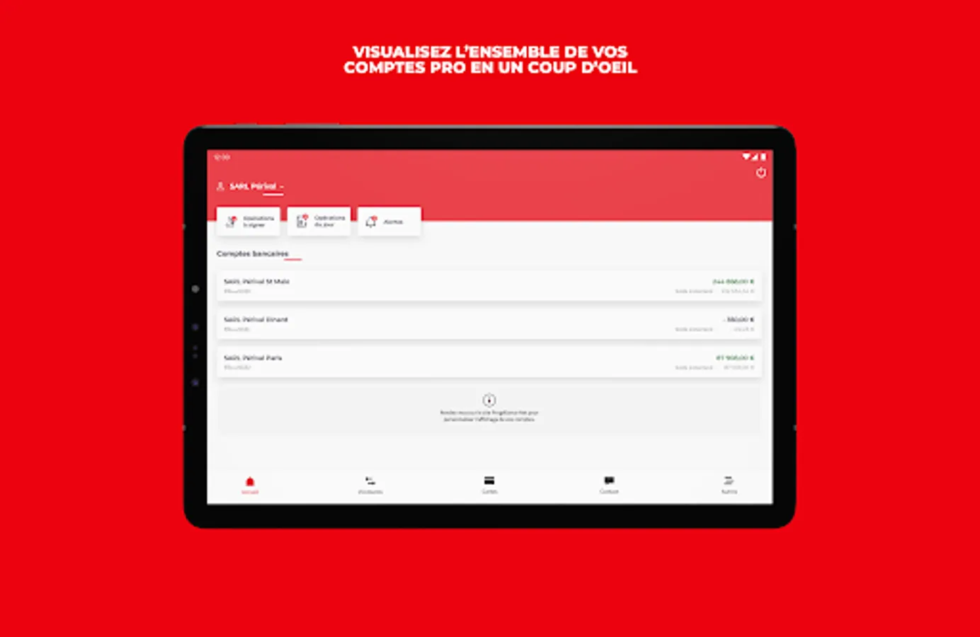 - View all the accounts of your subscription on a single screen and be notified of key events in your activity thanks to notifications and alerts, for a 360° view of your assets and banking transactions.