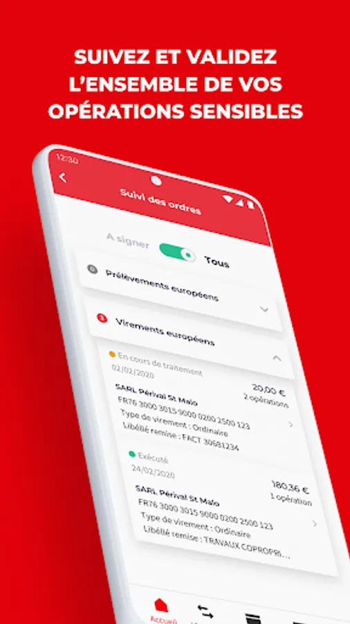 - Access the monitoring of your movements: history of your operations and signatures of your current orders.