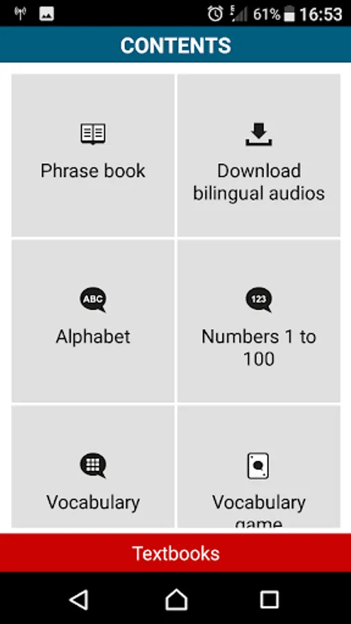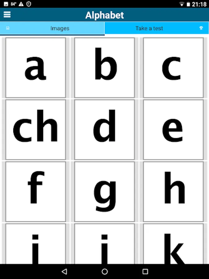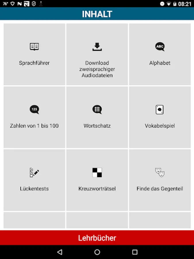 6. Tap on "Practice" in the Main Menu to practice the content of the lessons. Here you can also learn the alphabet and the numbers.