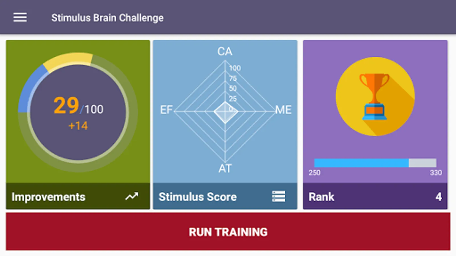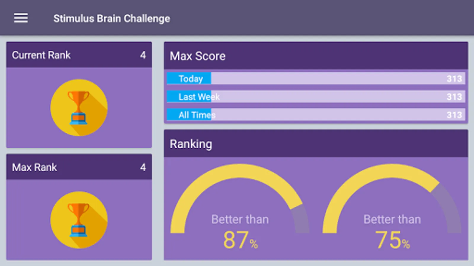 You can track your improvements and your current state with the help of a simple interface with detailed info about your performance.