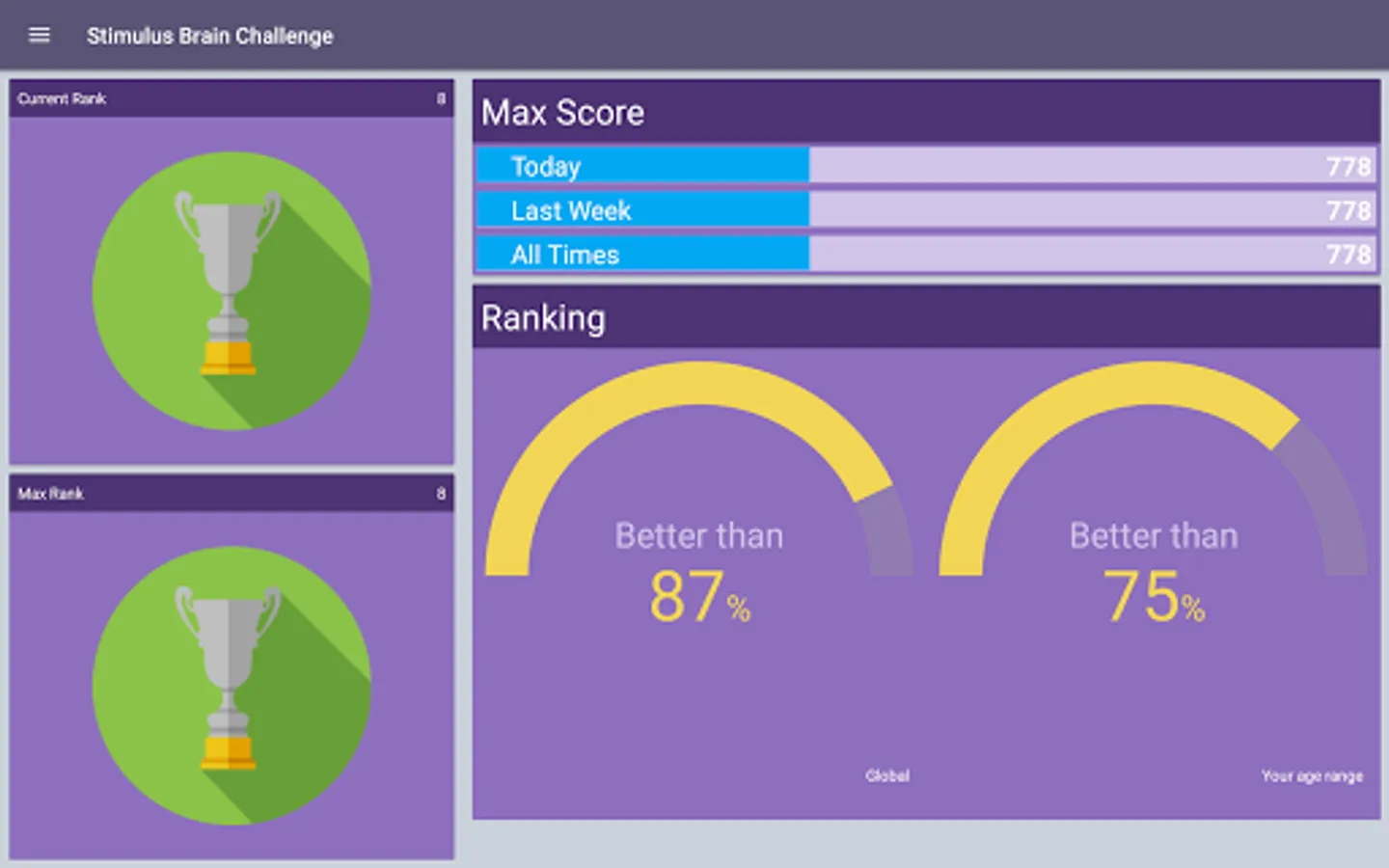 Compare your score with the general scores and your age group scores.