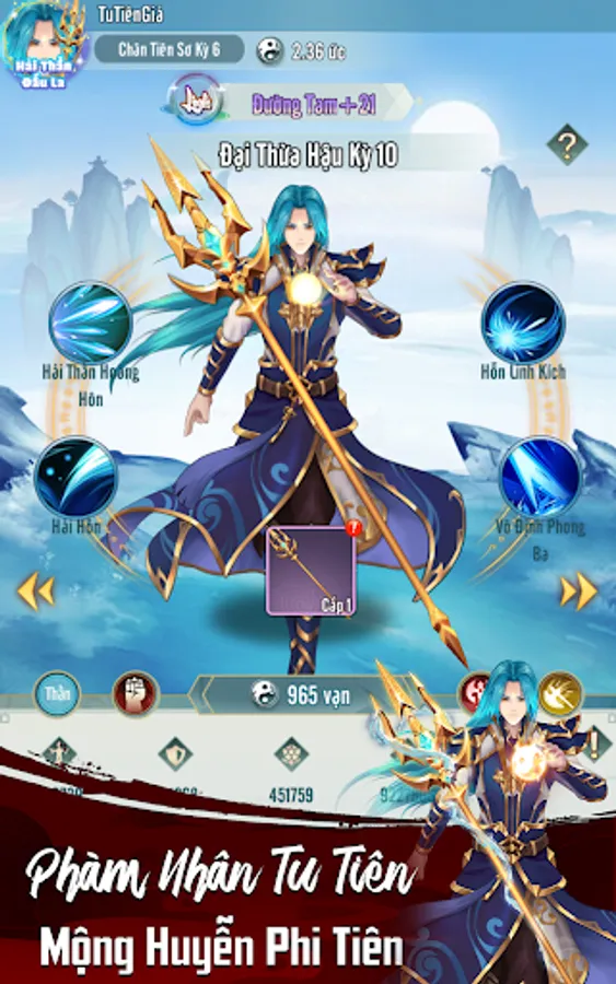 Adapted and combined from many famous Tu Tien stories, Ta is Tu Tien Dai Lao allows players to experience the most authentic feeling of cultivation with levels from Qi Refining - Truc Co - Kim Dan - Nguyen Anh - Transformation of Gods - Practice Void - Fusion - Mahayana - Tribulation. Step by step cultivation, from an ordinary person to a great immortal ascending.