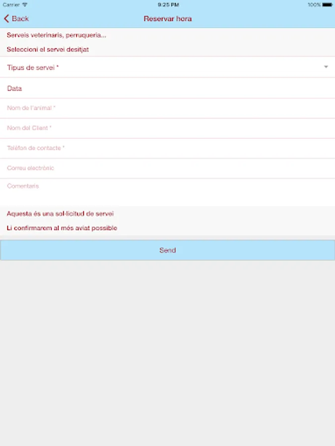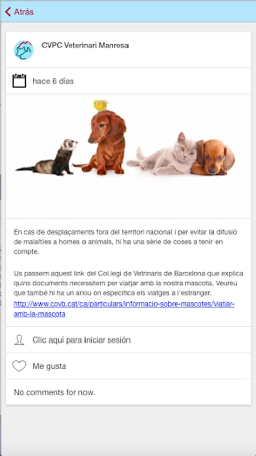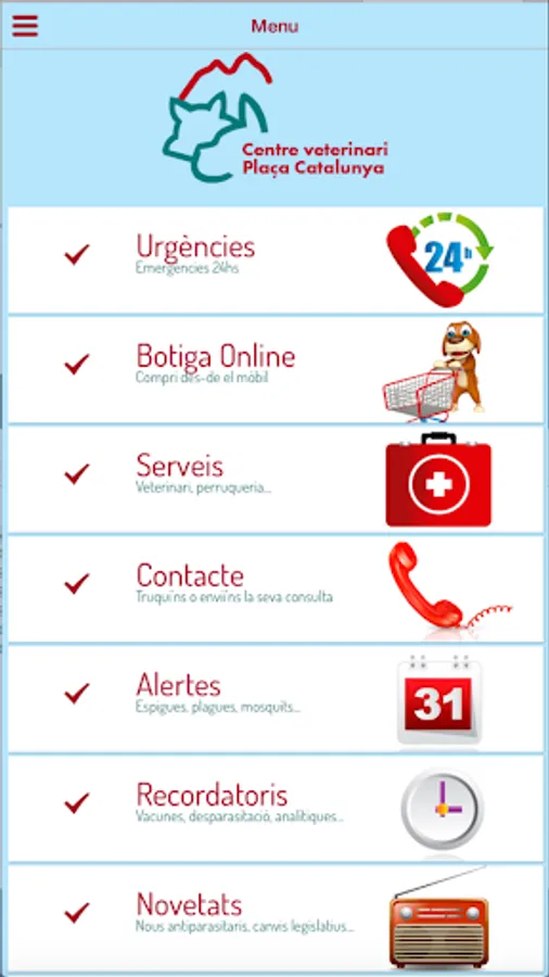 With the Mobile Application Veterinary Center Plaza Catalonia Manresa, you will have all the information for your pet, you can make appointments for different services or request favorite feed your pet that you send directly your home, without having to scroll.