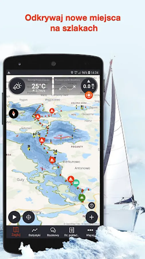 Sail is a navigation application for sailors, thanks to which you can safely experience adventures on lakes and discover new places: restaurants, accommodation, ports, technical points.