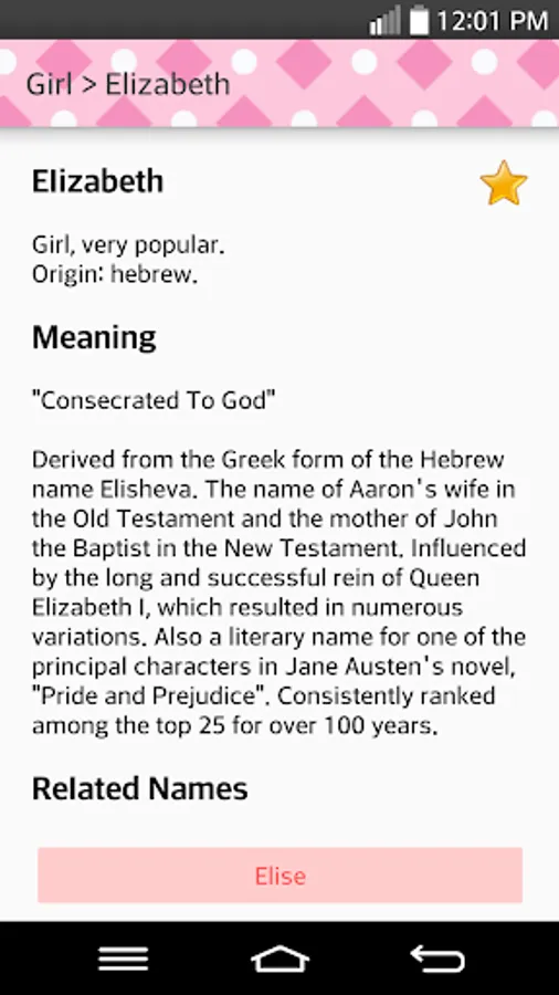 - Name meanings;