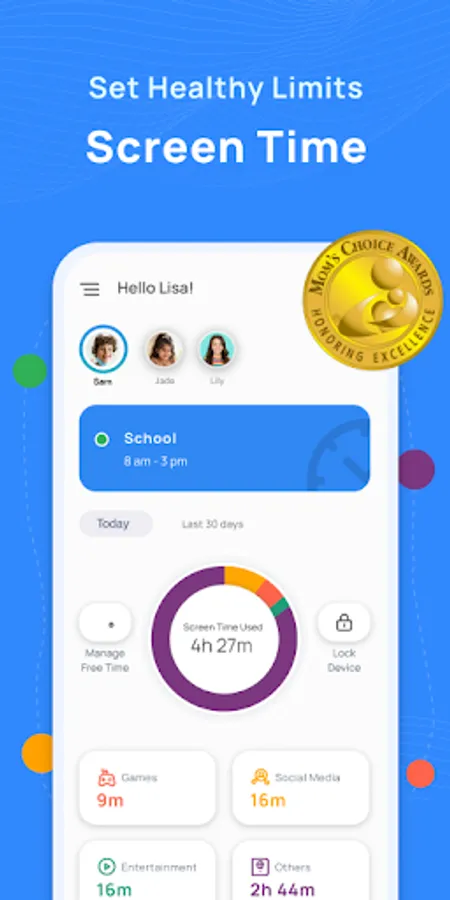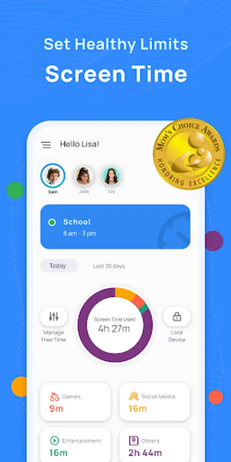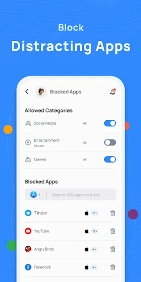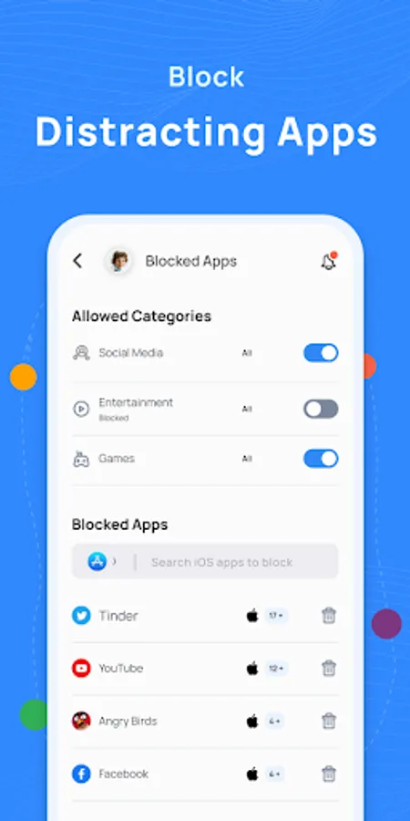 • Limit apps: Block or limit the time spent on social media, games, videos, and texting apps.