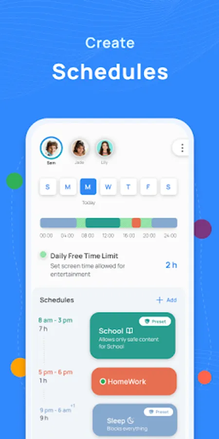 • Block schedules: Create schedules for homework, bedtime, or family time and lock devices during those periods.