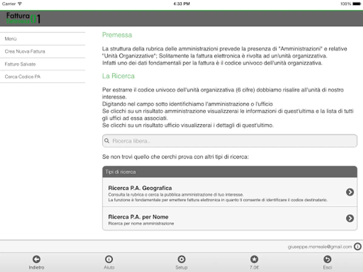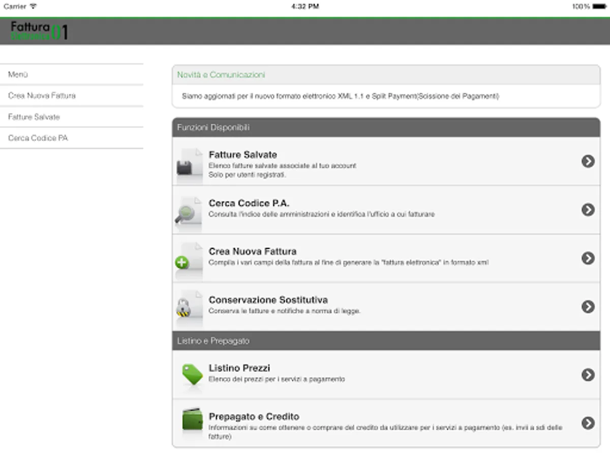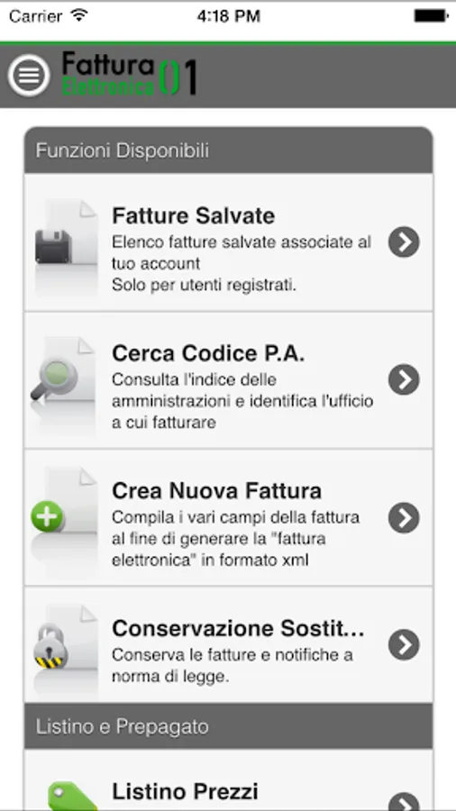 All invoices generated by you will be available within your account is the app that the site http://fatturaelettronica01.com