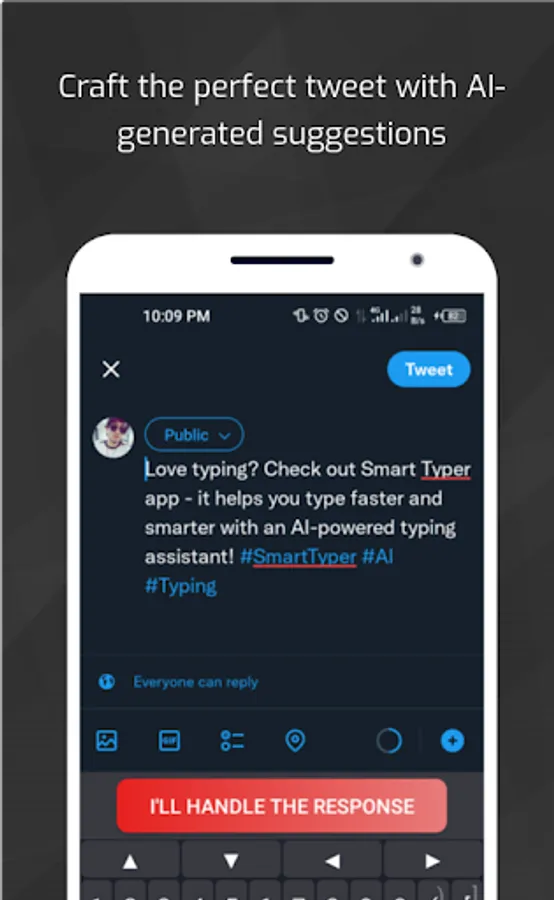 Introducing the ultimate keyboard app for all your writing needs - Smart Typer. Whether you're composing an email, crafting a tweet, or trying your hand at a pickup line, our AI-powered keyboard has covered you. With our built-in prompt templates, you'll always have inspiration for your writing. It will help you finish your prompts with relevant and coherent suggestions, making your writing process faster and more efficient.
