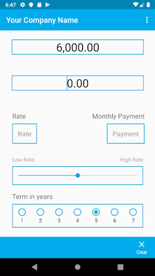 Because the user can set pre-defined high and low interest rates as well as the term of loan the only information needed when quoting to a client is the loan amount. There is also an option to include a Residual Payment if required.