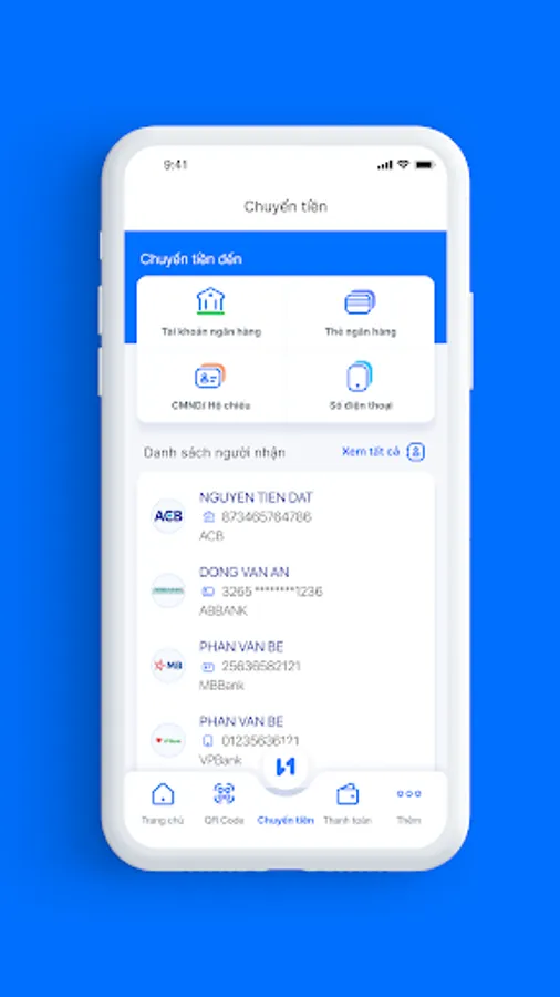 - Chuyển tiền NHANH vào tài khoản trong hệ thống hoặc thẻ liên ngân hàng có ngay trong vòng 1 phút.