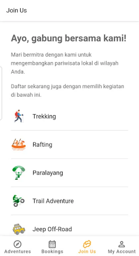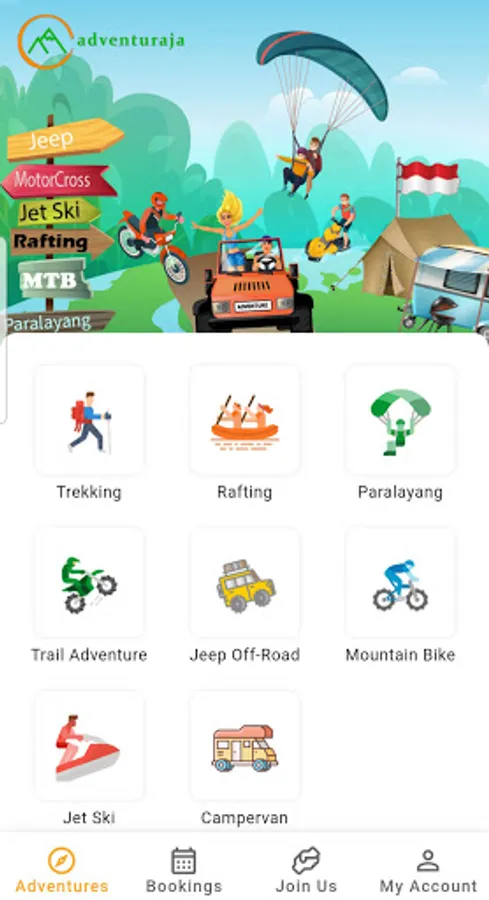 Adventuraja is a digital application platform that provides online reservation services for tourism activities aimed at advancing tourism in Indonesia by facilitating adventure activities with activity managers, whether EO, community or private.