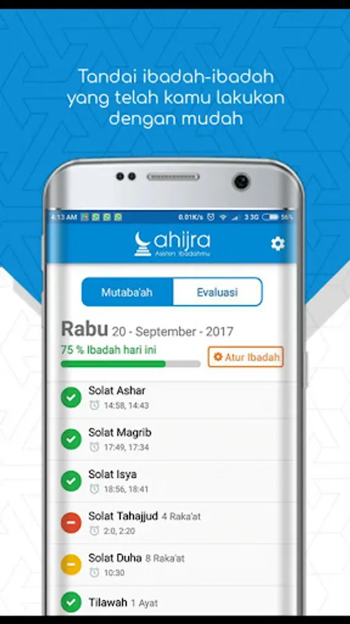 ahijra hadir membawa semangat untuk memudahkan dan membantu setiap orang berhijrah, khususnya dalam ibadah harian. ahijra membantu merencanakan dan meningkatkan kualitas dan kuantitas ibadah harian, sehingga ibadah menjadi lebih terstruktur dan terkelola. Dari yang belum biasa menjadi terbiasa. Dari yang sudah terbiasa menjadi kebutuhan, dan semoga terus menjadi kebutuhan sampai akhir hayat.