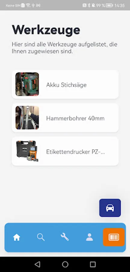 Create your inventory of tools and vehicles easily in the management platform and label the tools with the supplied QR code stickers. Simply scan your existing tool using the QR code provided and get all the details you want. Assign the tool to yourself, put it back, reserve it or report an existing damage.