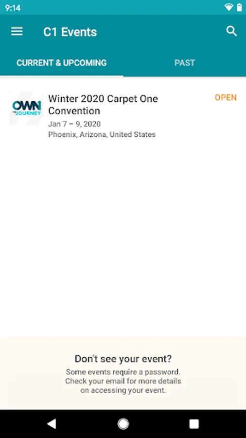 The C1 Events app is designed to house the details of the current Carpet One Convention and other events.