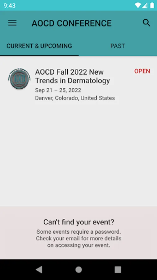 This app is for the delivery of the AMERICAN OSTEOPATHIC COLLEGE OF DERMATOLOGY's Virtual CME Conferences. Attendees who have registered for this conference will have full access to the content by using the app. The content contained in the app is the property of the AOCD and may not be duplicated.