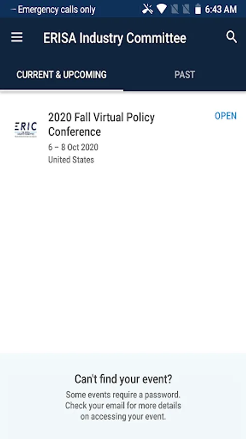A mobile app providing ERIC policy conference attendees with important conference related information. That information includes: up-to-the minute event news, agendas, speaker biographies, rosters, and more, including hands-on participation through pop-up surveys and in-app texting with other attendees and the ERIC staff. The app will also allow ERIC staff to communicate throughout the event to ensure a seamless transition from panel to panel.
