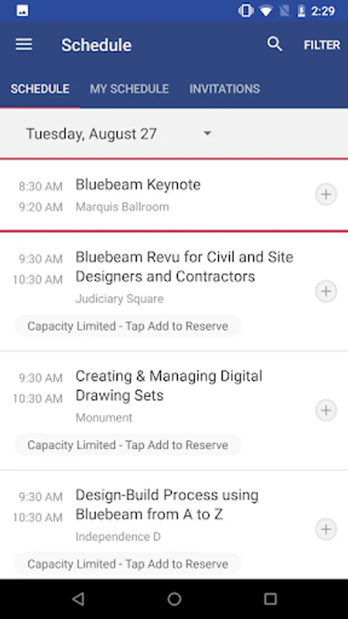 With one app, you will have access to all of Bluebeam's event content, including complete conference schedules, speaker bios, interactive venue maps and more. Stay on top of your session schedule, network with fellow attendees and sponsors, and connect to the larger social media Bluebeam community.