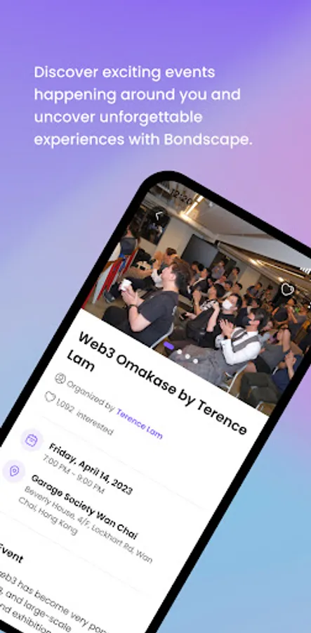 For event enthusiasts, organizers, and influencers who crave deeper connections and unique events experiences, Bondscape is a next-generation social networking platform that bridges the digital and physical realms of social interactions helping you to nurture deeper and long-lasting connections with others.
