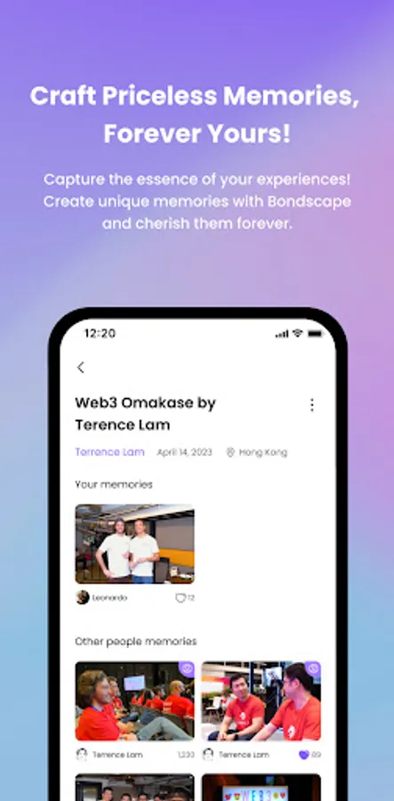 Take your events to new heights with Bondscape, your portal to a deeper, sociable, and captivating event journey! Dive into a world of discovery and partake in events that morph into lasting digital memories. Broadcast them across all platforms to amplify your engagement! Thanks to our cutting-edge blockchain technology, your Bondscape profile and memories belong solely to you – an individual treasure chest for you to delve into, cultivate, and share. Embark on your Bondscape adventure today! Witness the future of event engagement!