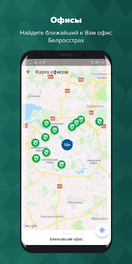 • find the nearest office of Belrosstrah, find out the time of its work, call the selected office