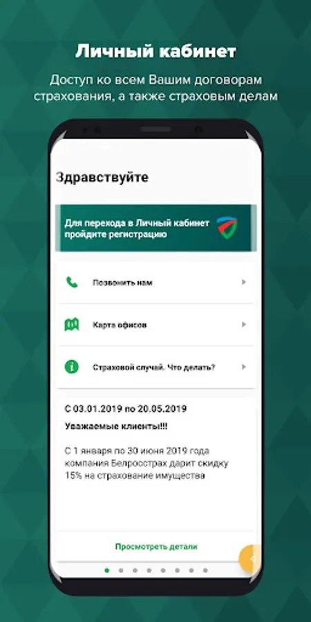 • Push notifications about a change in the stage of your insurance business or a new profitable offer from Belrosstrakh