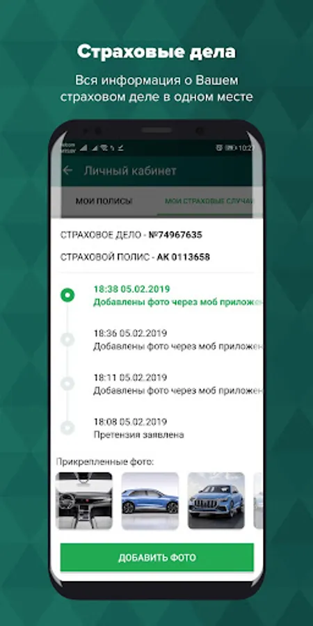 Now you get access not only to all your insurance contracts, but also to all your insurance matters: track the settlement history, get the status of your payroll in real time, add photos of documents or damages, always have at hand all the data of your insurance matters.