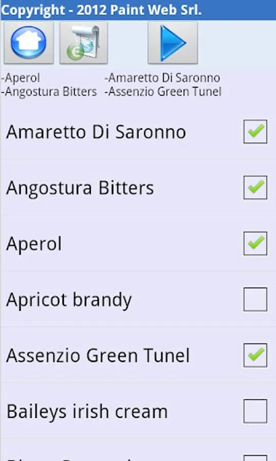 Calculate the price of a drink is easy: choosing from the list proposed the ingredients of the drink, then the software prompts you for each ingredient selected to enter the quantity.