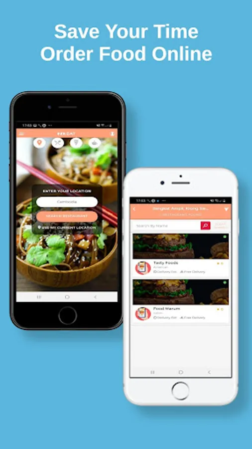 Browse nearby restaurants and search for food by cuisine, restaurant name, meal, and diet. Choose from a variety of food to order including Khmer food, Thai food, Vietnamese food, Chinese food, Indian food, fast food, western food, sushi food, burgers food, Pizza food, all kind of drinks. Order the food with KEU Eats app.
