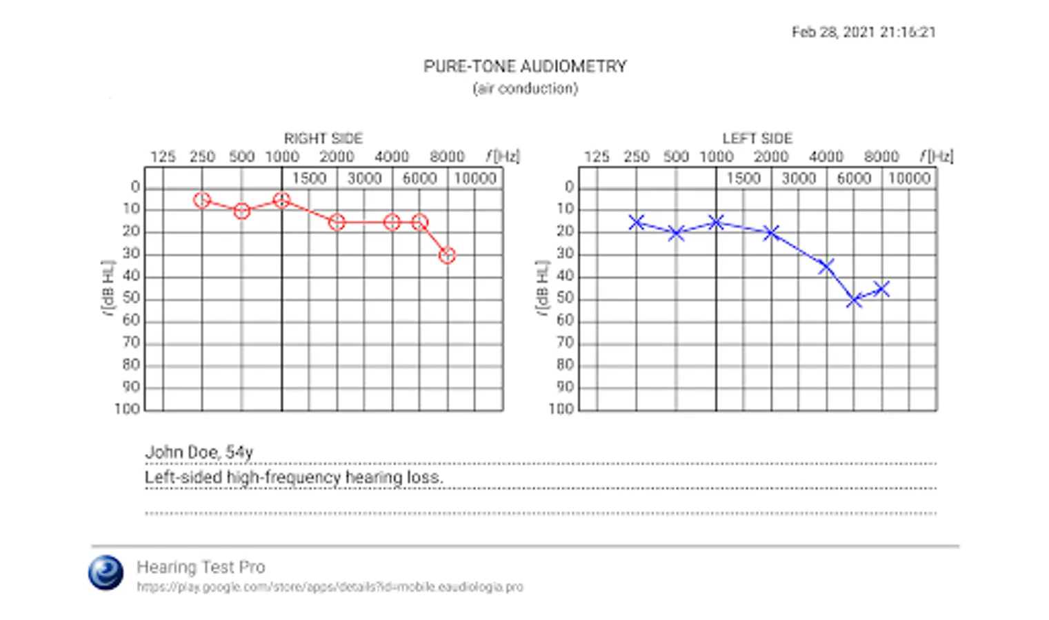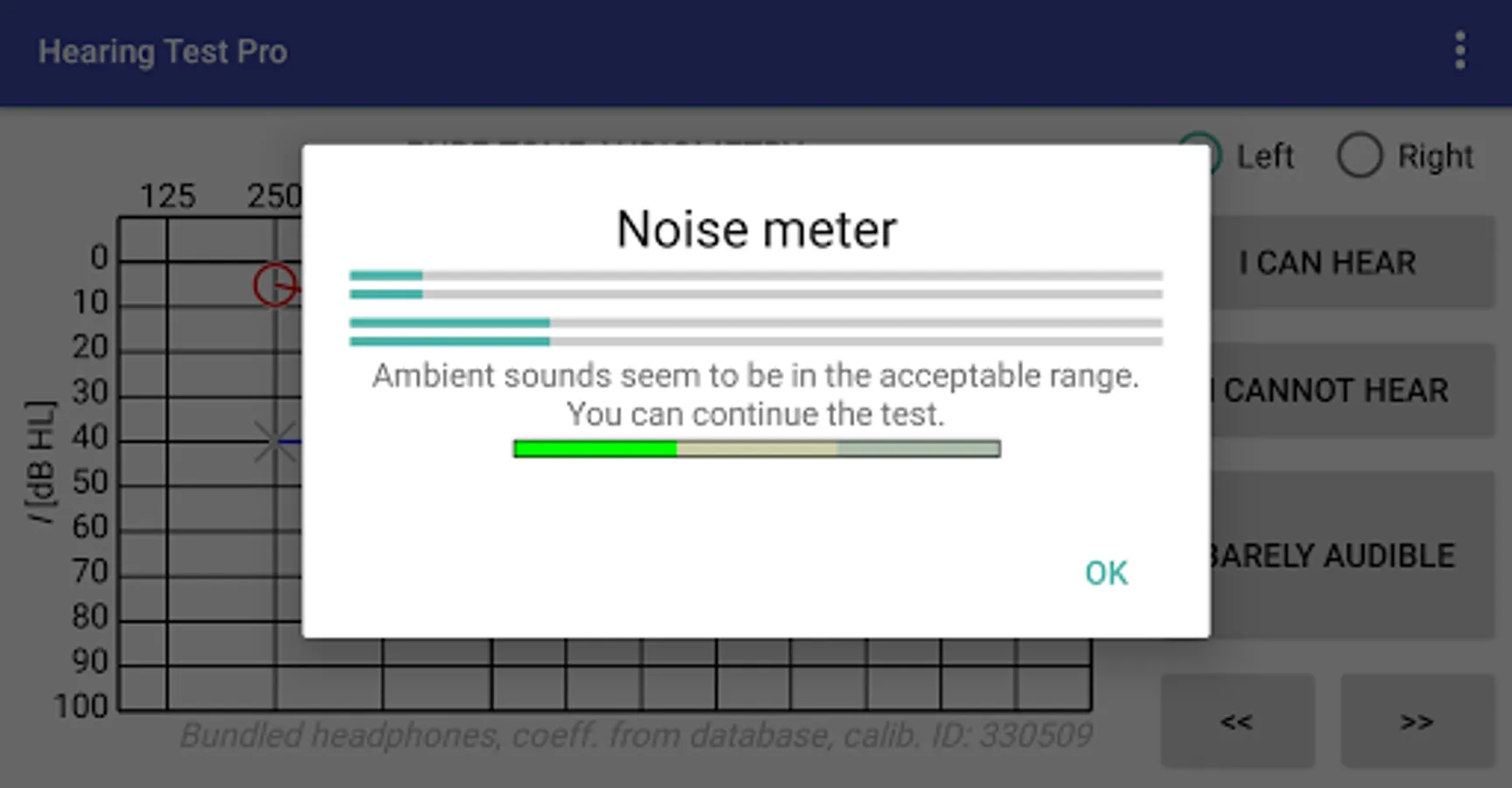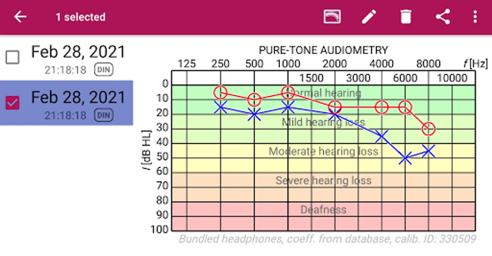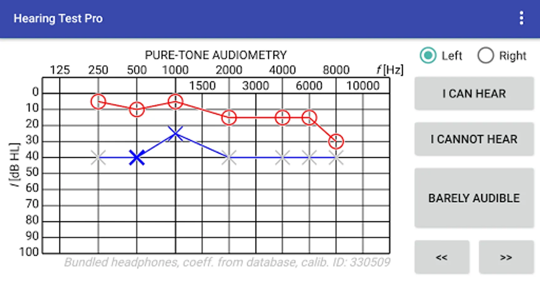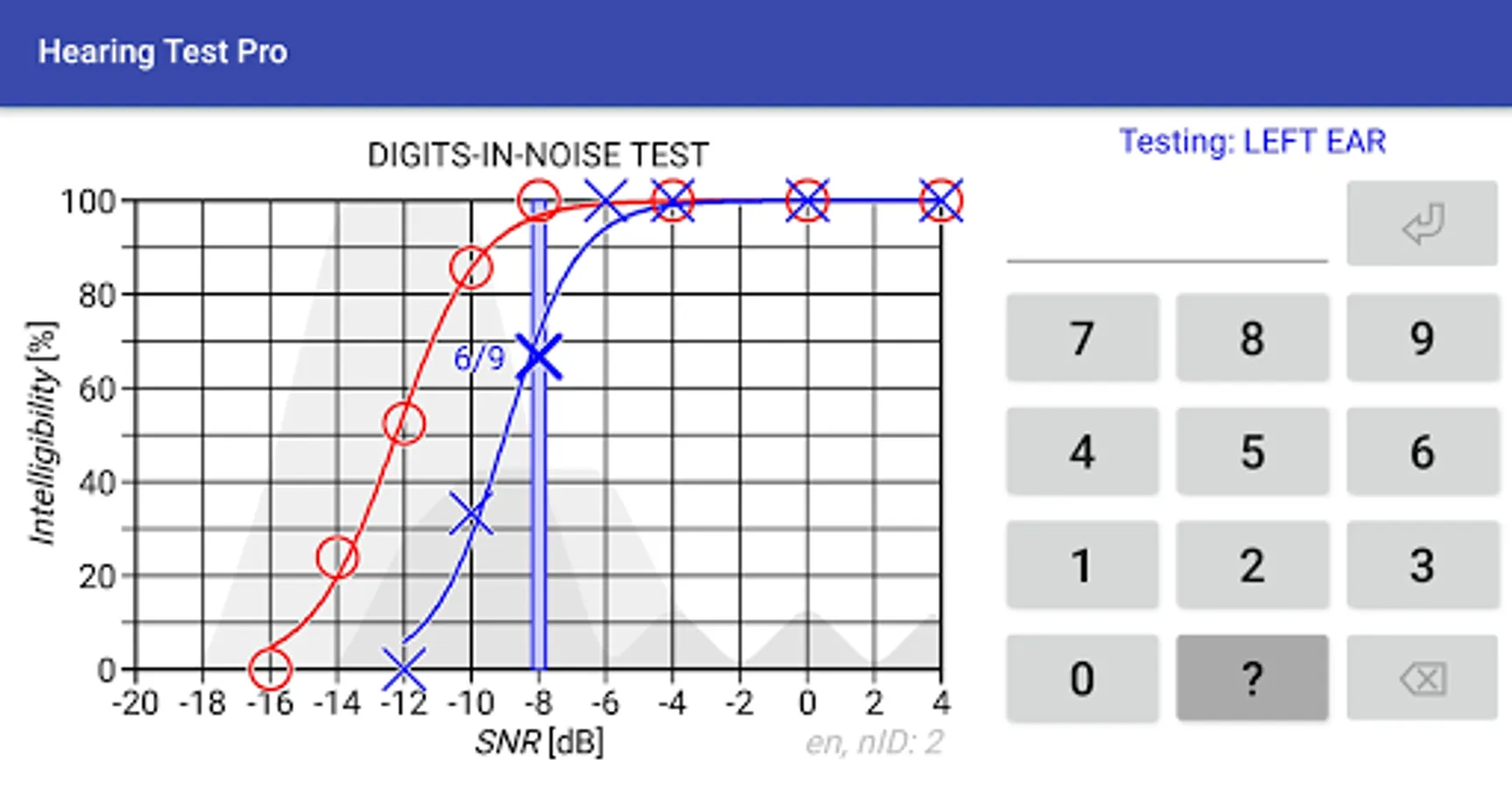 The app provides two basic hearing test: pure-tone audiometry and the speech intelligibility test (the digits-in-noise).