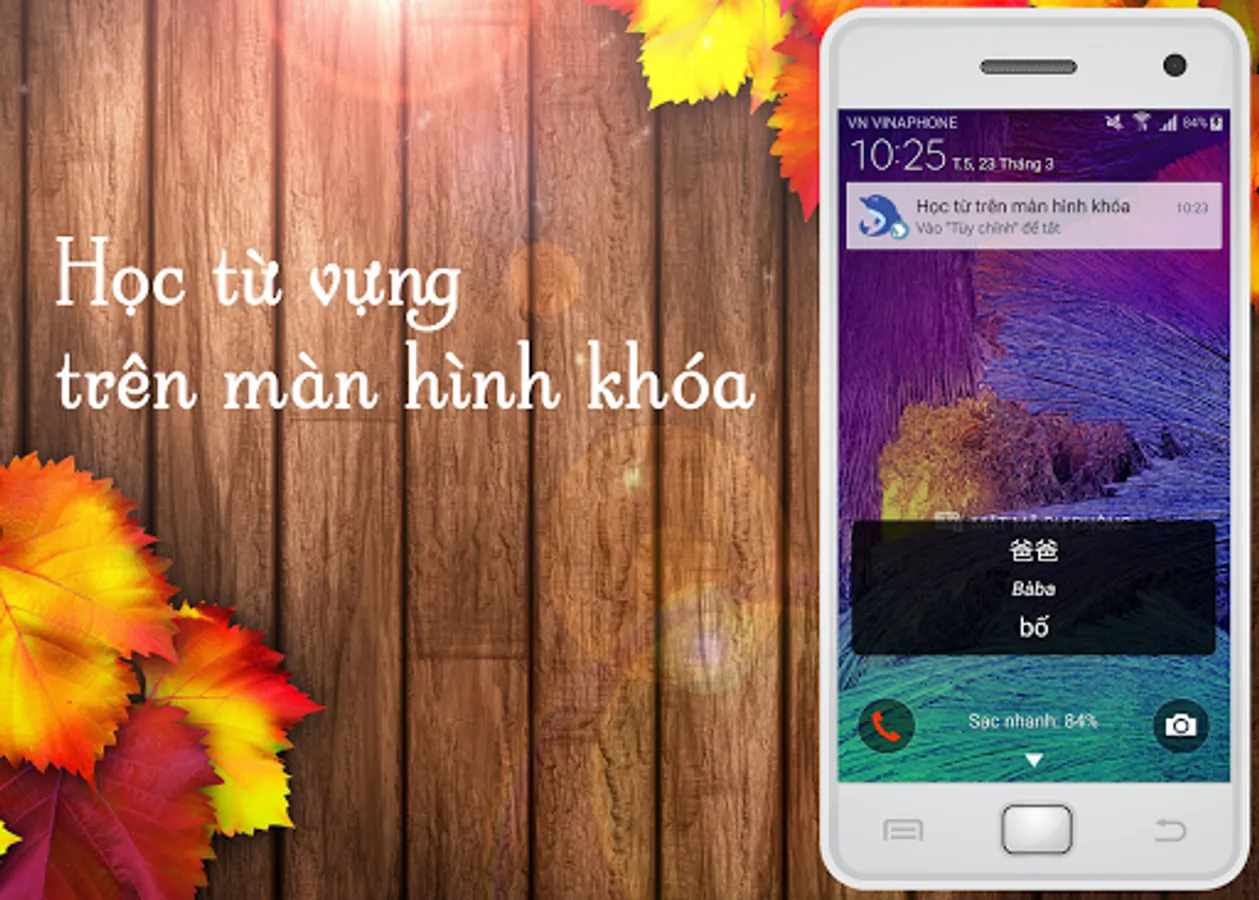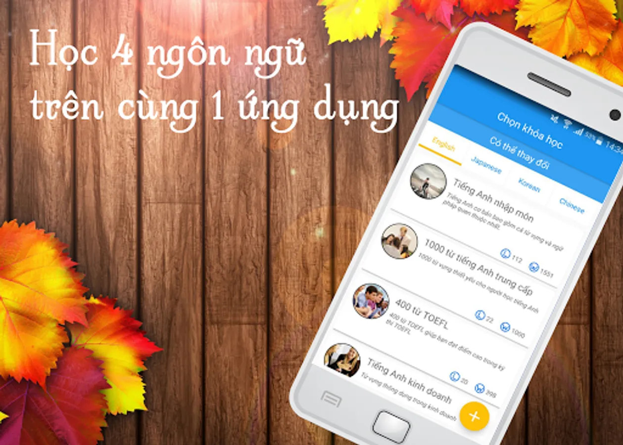 You can learn English vocabulary every day, learning Japanese vocabulary (kotoba), Korean vocabulary every day, learn Chinese vocabulary on the same application.