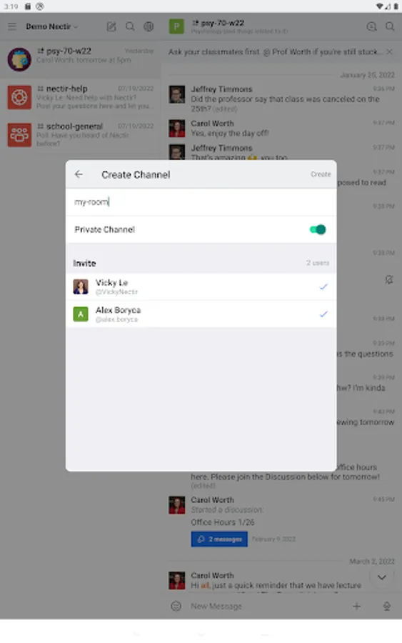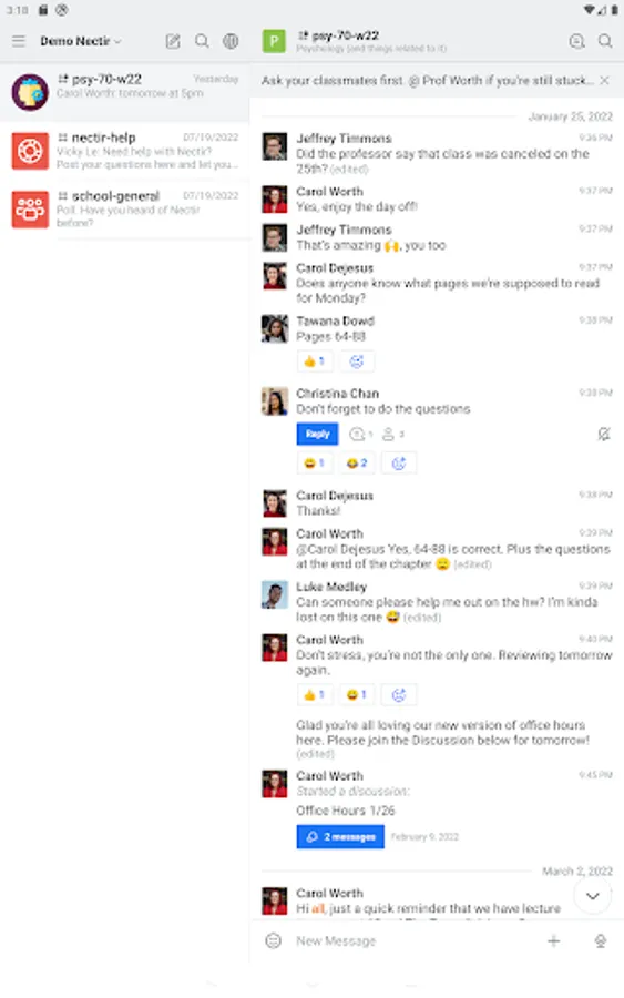 Nectir is an instant messaging tool built for classroom communication. Create virtual communities by connecting all your students in one place. Anyone on campus can create a channel and invite other members.