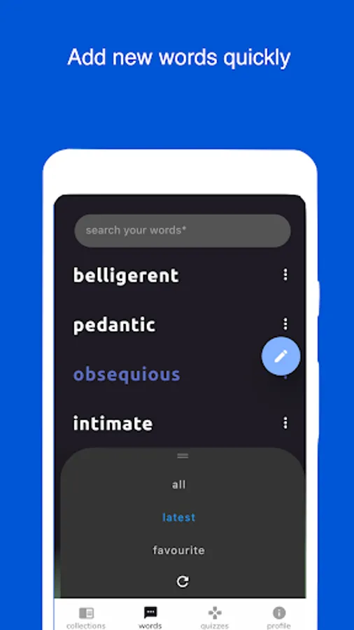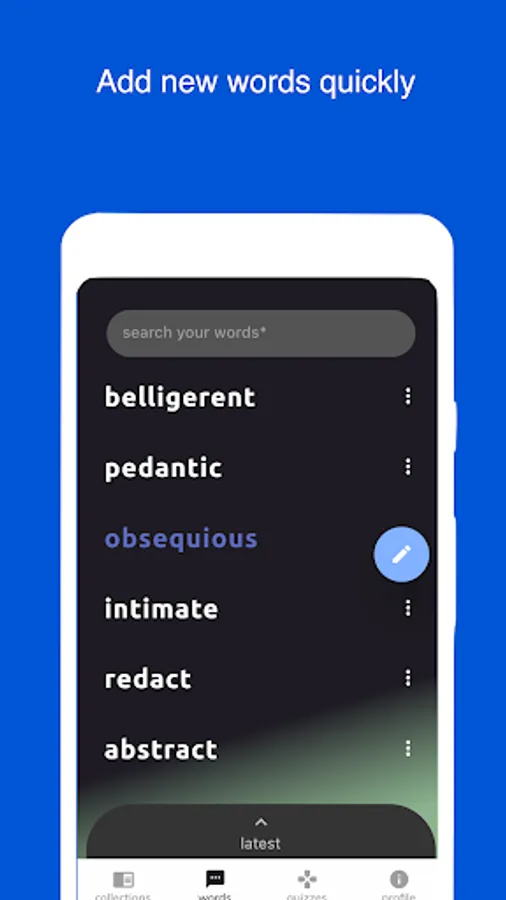An improved English vocabulary gives you the words to say exactly what you mean, thereby making you a more effective communicator. WordBank helps you learn new English words, and build your vocabulary, while reading the books and magazines you love. When you come across an interesting word, just add it to your WordBank to get the definition and pronunciation. Associating new words with books, magazines or characters, make them easier to remember.