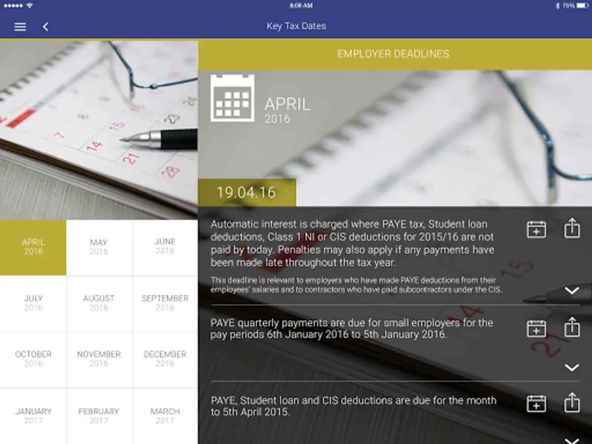 This App has been created with professionals and business owners in mind. Our TaxApp has been designed to provide a reminder of key tax rates and convenient access to a range of useful tax calculators in one App. The application also summarises the key taxes with useful tips and a roundup of relevant business news each month.