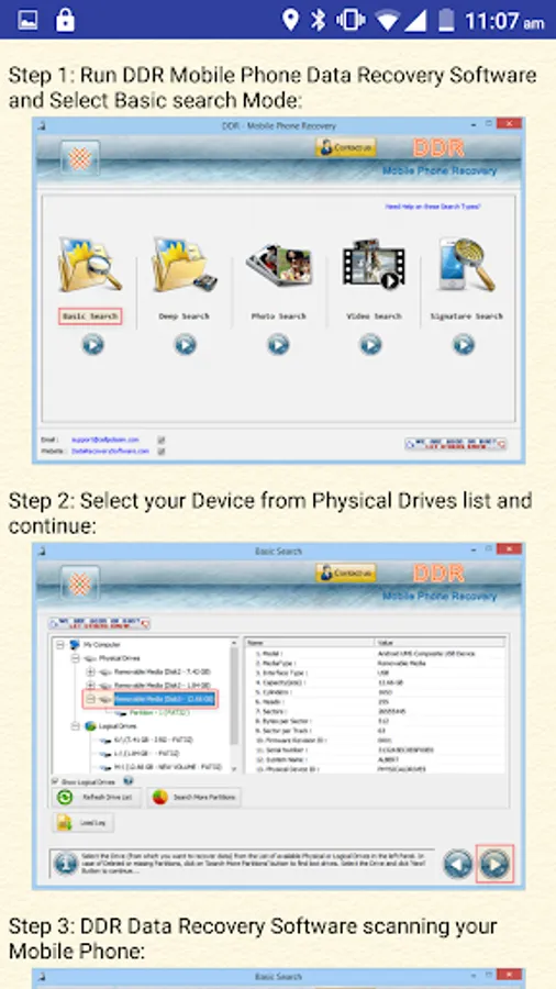 DDR Mobile Phone Data Recovery Software works for Windows as well as Mac. If you require any further technical assistance from our expert Data Recovery Team, You can contact us just by a single tap on contact us button within the App.