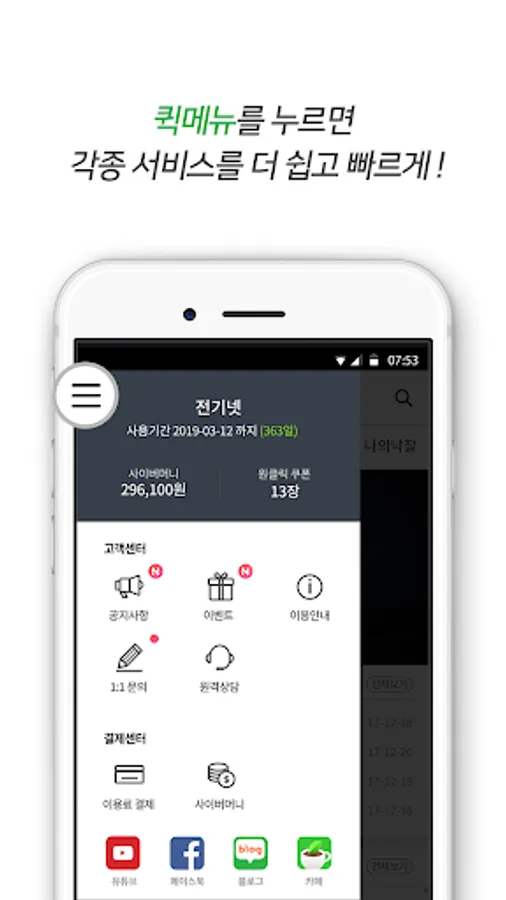 The three-line menu (3) allows you to access services such as customer center, payment center, application settings, and logout in one place.