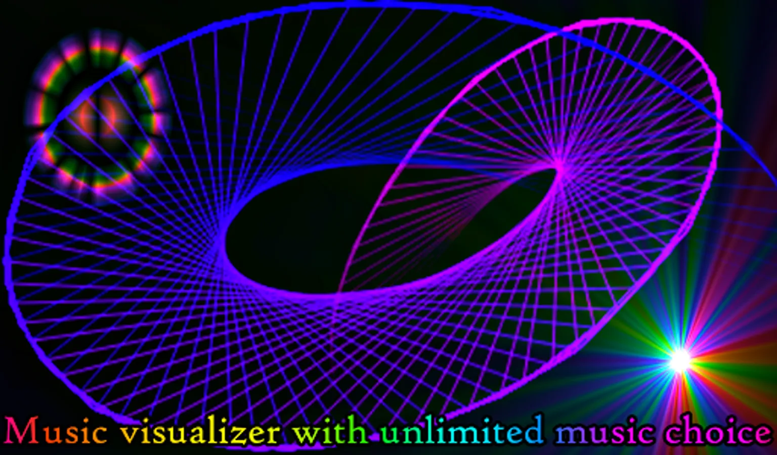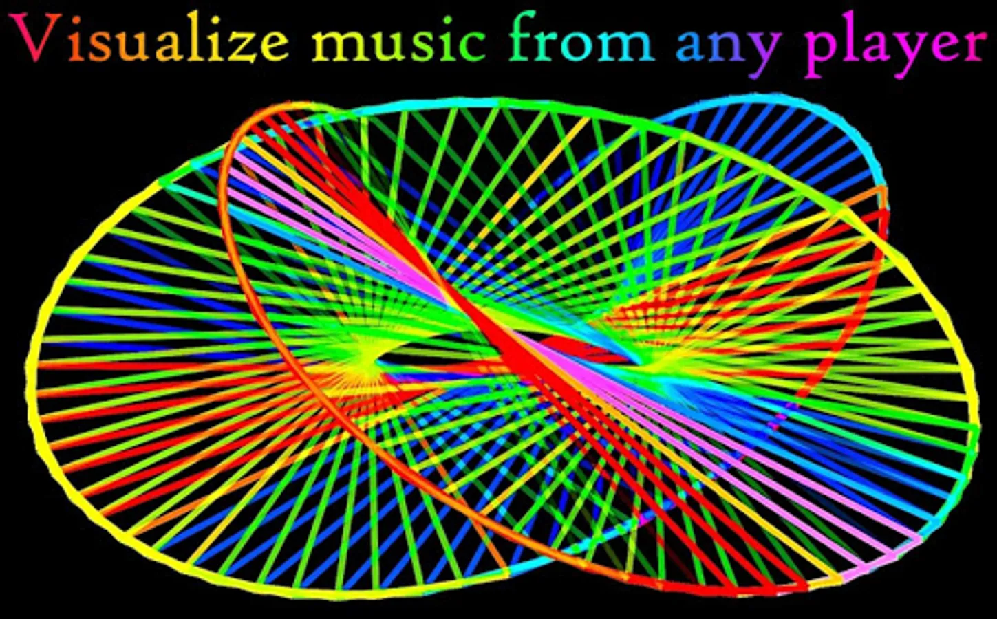 Play your music with any audio player. Then switch to this app. It will then visualize the music. 47 radio channels are also available with many music styles. A player for your music files is also included. 19 visual themes for music visualization are available.