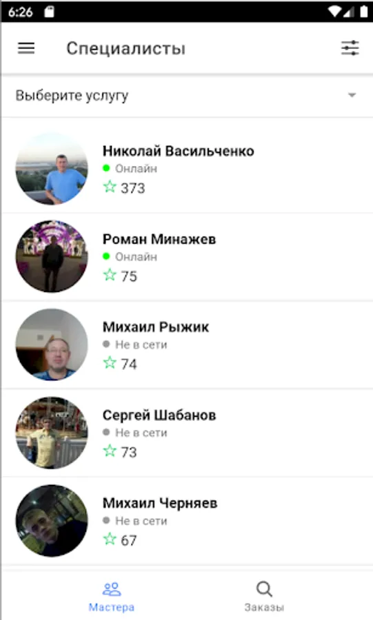 Here you will select a trusted master, since they all pass quality control before publishing their profiles on the service.