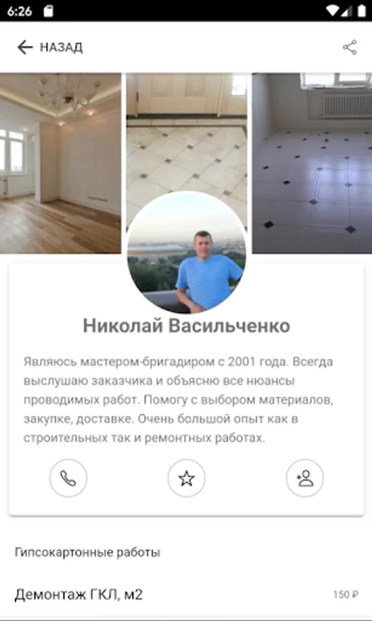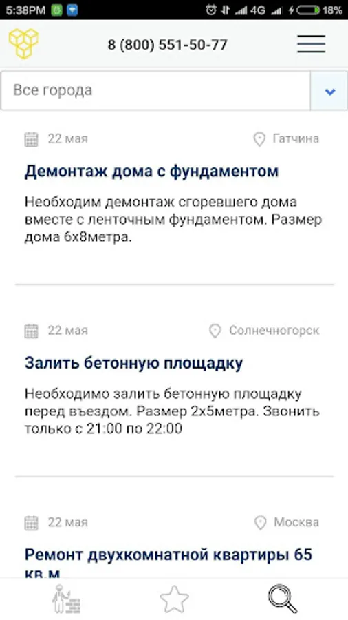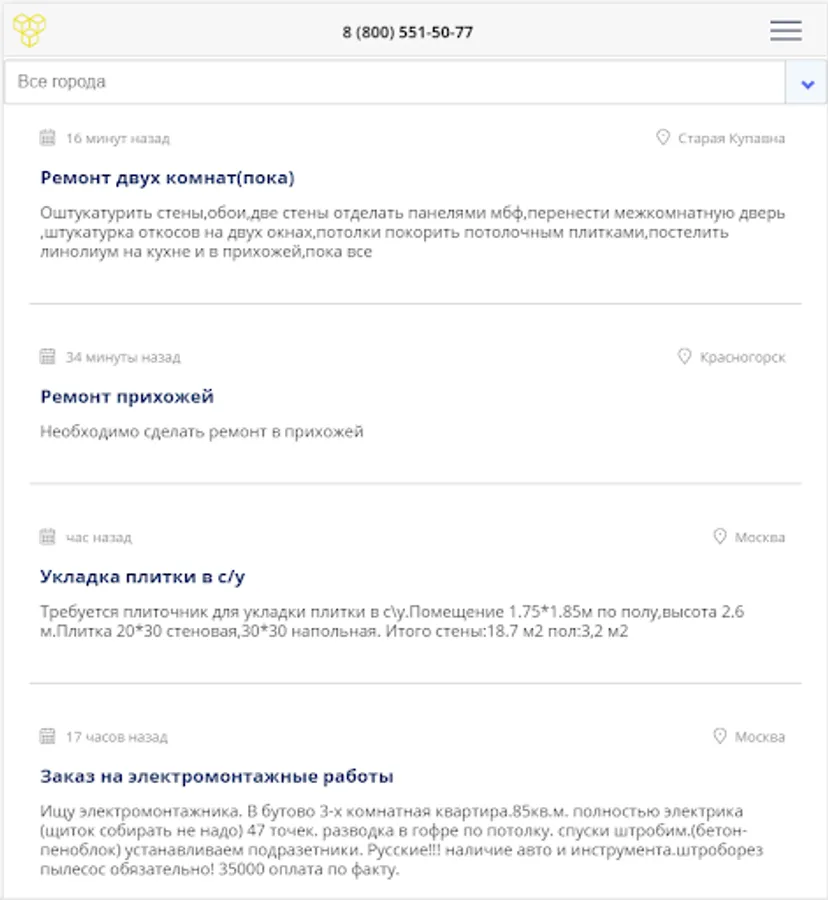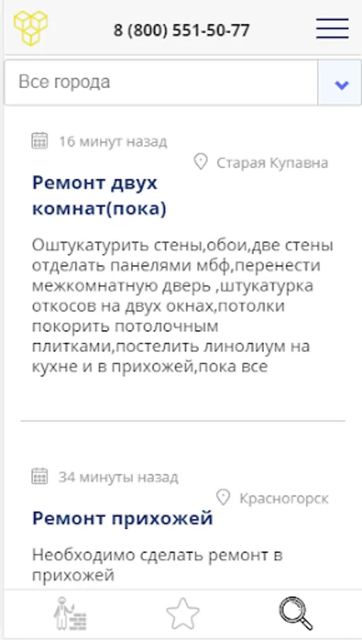 Every day we use certain types of services. We change the mixer in the kitchen, move things to a new place of residence, build a terrace or order an apartment cleaning after a noisy party. Zakazremonta application will help you quickly and easily find a specialist or company for any type of construction work and decoration. You can also find a loader or interior designer for yourself. Take out the garbage, order a cleaning company, or you just need computer help - it's all here! Open the application, leave a request, your waiting time will only take 5-10 minutes!