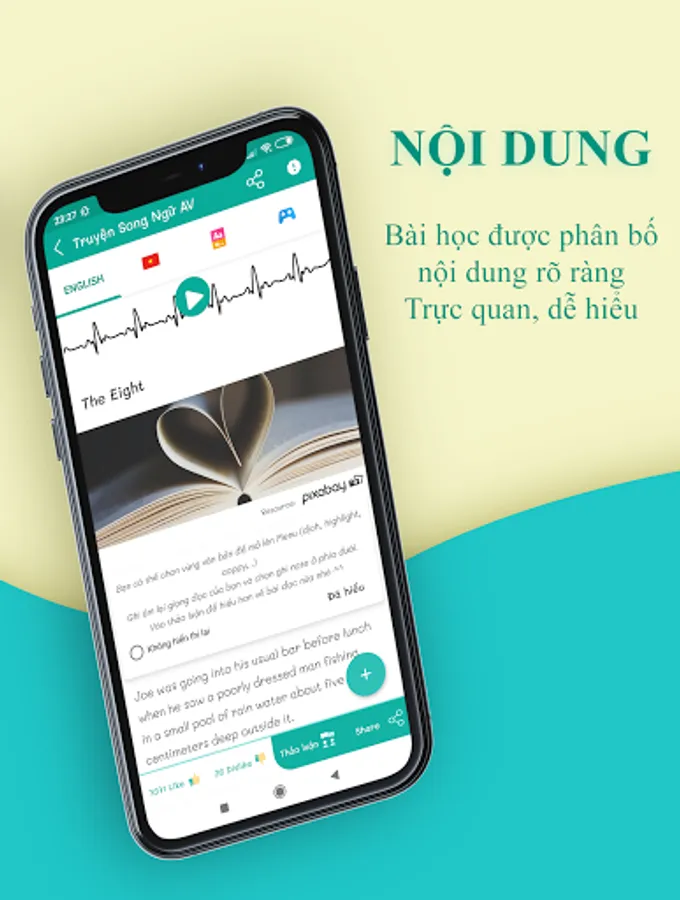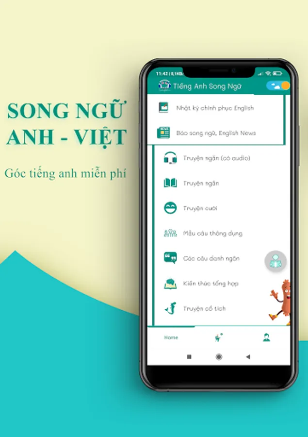 With learning English is no exception, "Song ngu Anh Viet" is an application that gives you good and useful bilingual English stories. Besides the readings, audio is also available. In addition, the application also provides a lot of functions for you to learn more effectively: