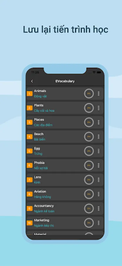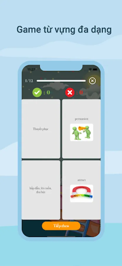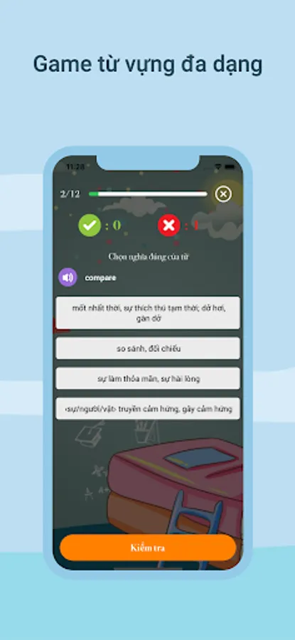 + Provide review solutions including Flashcard, sentence matching test, ... to help you review the memorized words after 3 days, 7 days, 14 days, and 30 days. You will remember longer with our revision program.