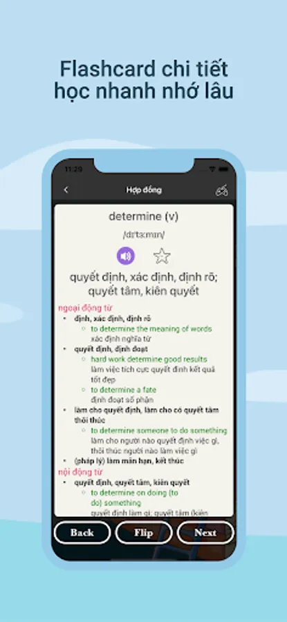+ Flip flashcard words: help to remember difficult words that cannot be immediately remembered by flashcard style