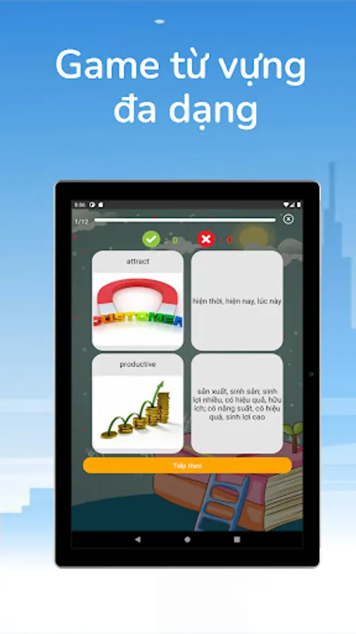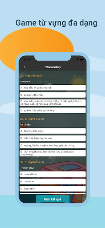 + Many fun vocabulary learning games, fully develop 4 skills of listening - speaking - reading - writing English naturally, effectively, without the heavy feeling of learning anymore!