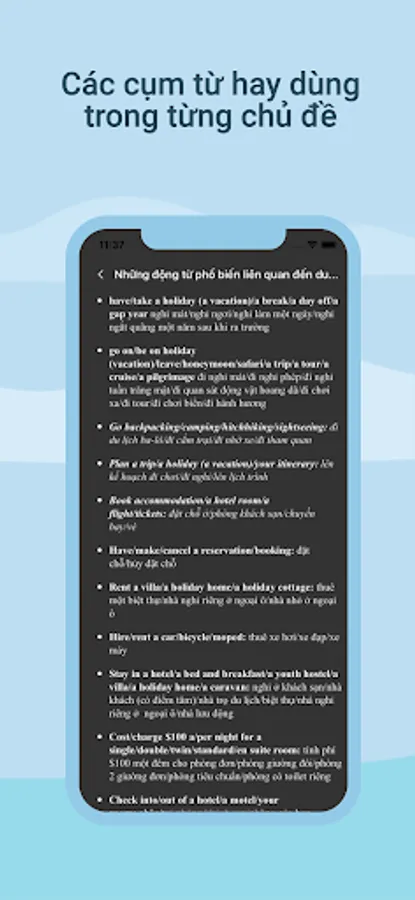 + List of words: sorted by topics that make it easier for you to find and accompanied by illustrations, transcriptions, examples, and standard pronunciation.