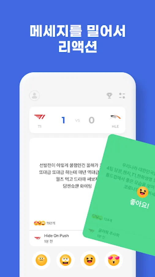 Unlike the existing streaming chat and comment-based communities, Sweep is a space where you can support your favorite team in real time by focusing on 'fun of communication'. It provides features such as real-time MVP voting and various reaction emojis to make watching e-sports interesting.