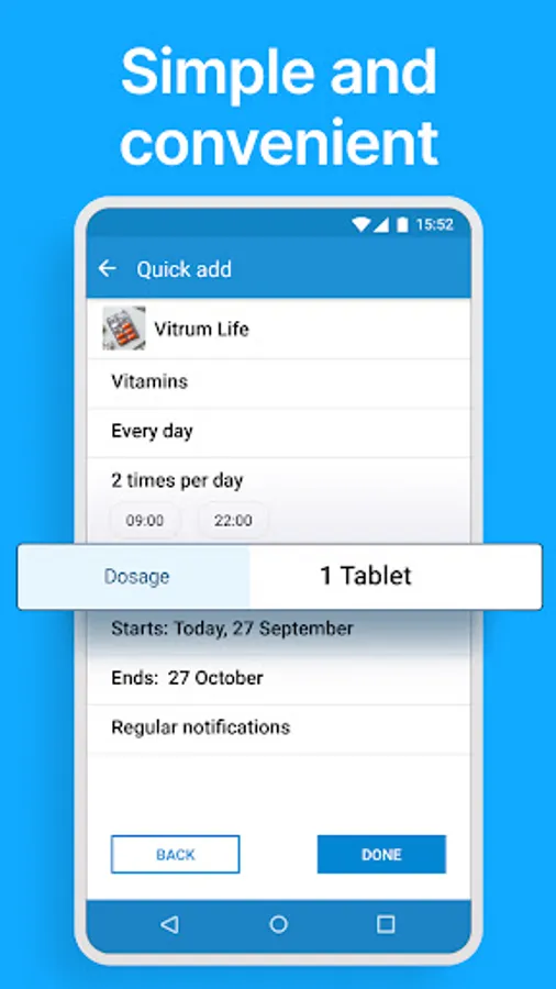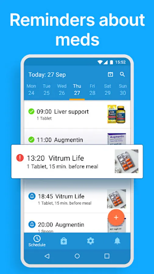 We present you an application that will help you take medication on schedule! PillsTime is a versatile assistant and pill reminder for taking the pills and will notice you, when you need to take meds according to your therapy plan. Our application will take care of the schedule monitoring of medication and vitamins for the whole family, so you can relax and enjoy your favorite things. Every pill will not be forgotten – a smart alarm clock is built into Pills Time and you will not miss receiving important medications. We consider the binding of medications to food intake, so we will surely remind you about eating, if you want.